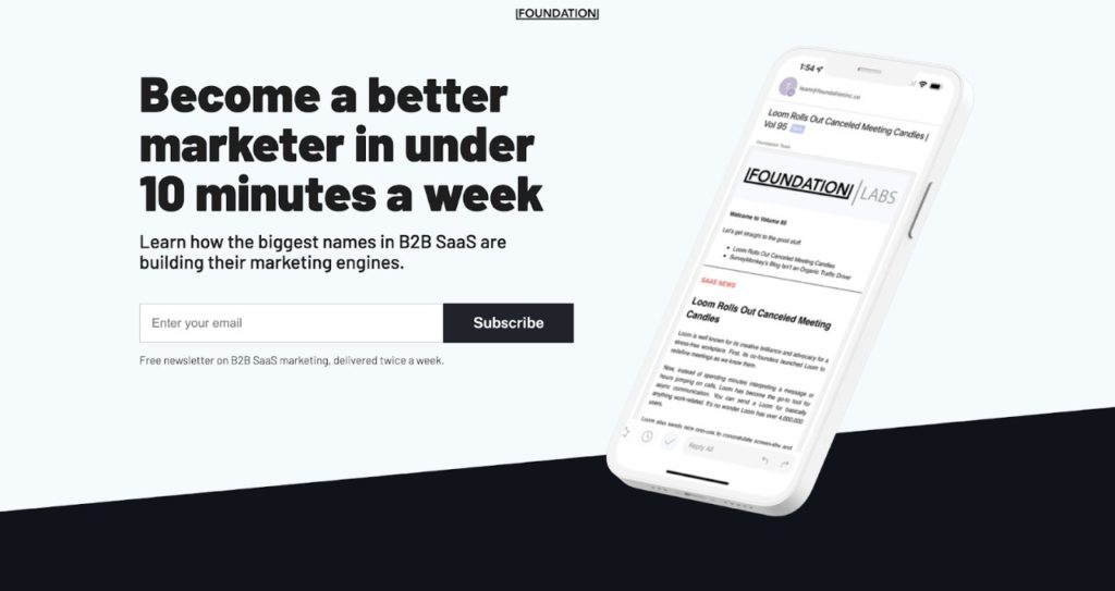 Foundation Lab uses data to help B2B SaaS brands build their revenue, leads traffic and much more using content marketing. Its newsletter offers information on how some of the biggest B2B SaaS brands are leveraging content marketing.