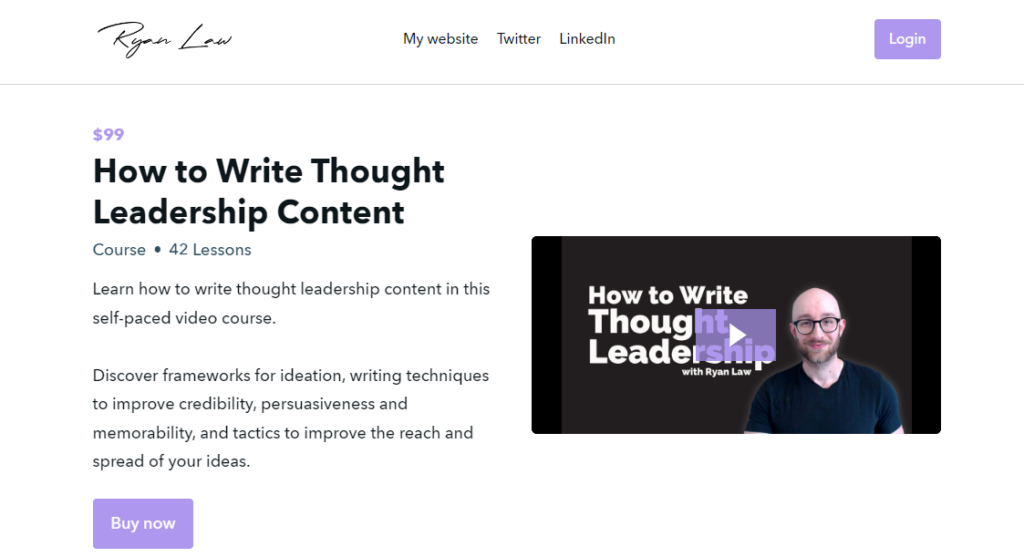 In his self-paced video course, “How to Write Thought Leadership Content,” Ryan aims to teach people the nuances of thought leadership and how to successfully incorporate it into content marketing strategies. The course will also help you learn ideation, writing, and distribution techniques relevant to high-quality and engaging thought leadership content.