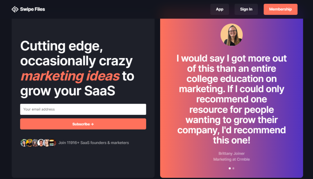 You can also interact with industry experts by joining the community of over 400+ seasoned marketers and founders in the industry from companies such as HubSpot, Zapier, Semrush, and more. Furthermore, you can also subscribe to the free Swipe Files newsletter.