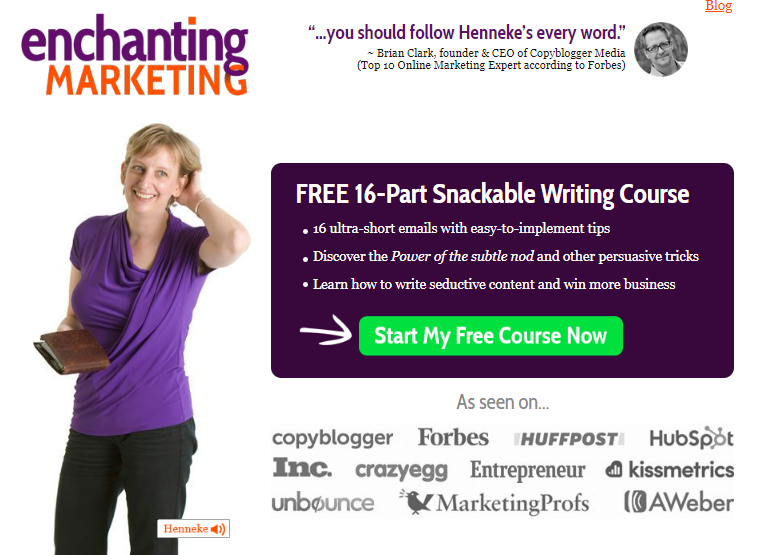 Hosted by Henneke Duistermaat, the 16-part snackable writing course helps writers execute ultra-short emails and discover the power of a subtle nod. In this course, you will learn tips and tricks to win business with content. You can sign up for free by filling in your email address.