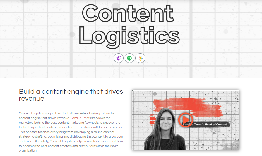 Want to build a content engine that helps grow your audience and drive revenue? If yes then you’ve got to check out the Content Logistics podcast. Hosted by Camille Trent, a copywriter and brand strategist, Content Logistics is one of the best podcasts for B2B marketers out there. You can find information-packed episodes featuring some of the biggest names in the content marketing industry such as John Bonini, Ryan Law, Jeremy Moser, and more.