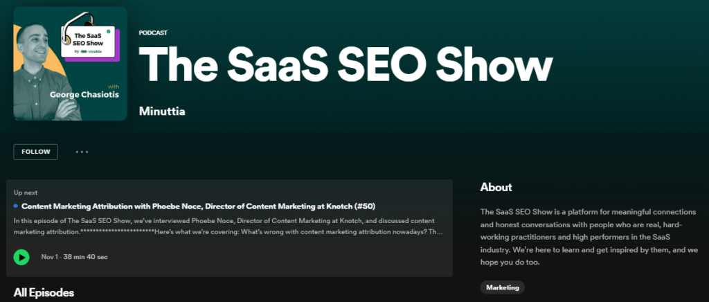 If you want to stay up-to-date with the latest trends in the SaaS industry, this podcast is an excellent choice. Hosted by George Chasiotis of Minuttia, The SaaS SEO Show is a podcast where you can find meaningful conversations with leading professionals in the SaaS industry. It is available on platforms such as Apple Podcasts, Spotify, and YouTube.