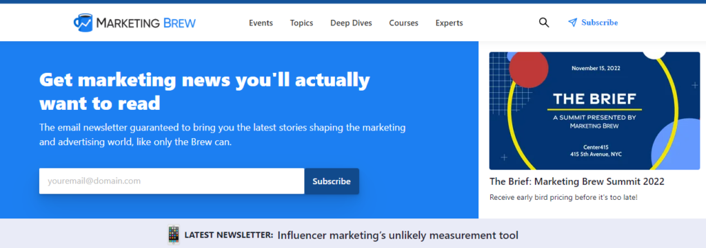 Advertising and marketing is a fast-moving industry, and it can be difficult to keep up with the latest news. Morning Brew is perfect to catch up on the latest news in marketing. This thrice-a-week newsletter highlights the biggest news items in the advertising and marketing world, with fly-by commentary and big-picture context.