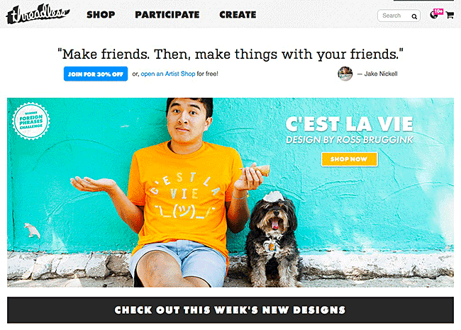 Threadless is undeniably aware of its target audience. You won’t find the authors on the company’s site speaking about their unique t-shirt patterns very often. Threadless, on either hand, has developed a content sanctuary for graphic designers and artists that is just the perfect amount of quirky and personal.