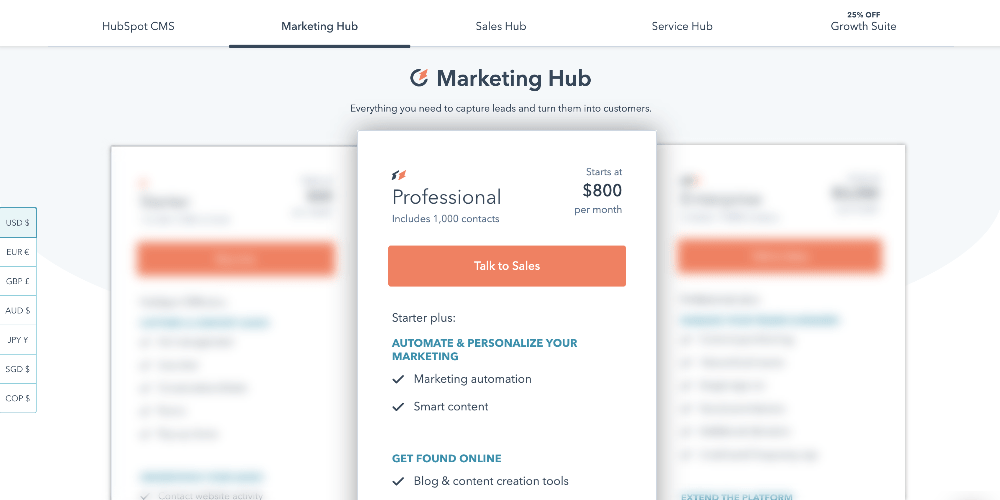 This one is an obvious deal-breaker. HubSpot’s pricing might seem affordable at first glance as you get the CRM free of charge, along with a few other tools. The Starter plan costs only $50 per month. And that’s good news if your business is smaller or on a budget.