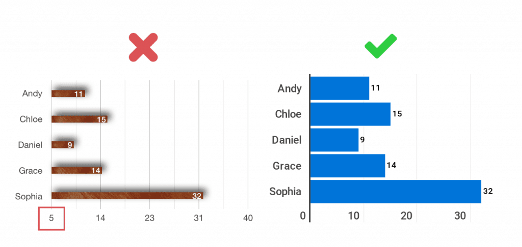 Misleading visualizations may confuse your audience. One of the better tips for data visualization is to have an honest presentation of your data. The most vital considerations to make are as follows: