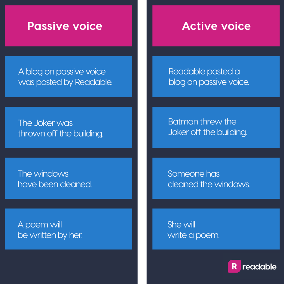Not only is passive voice longer than active voice because you have to include words like “was” or “were” – which makes your sentences more challenging to read – but you’re also using way too many words! People will have a hard time reading an entire sentence, let alone a whole paragraph, if it’s filled with words related to being passive.