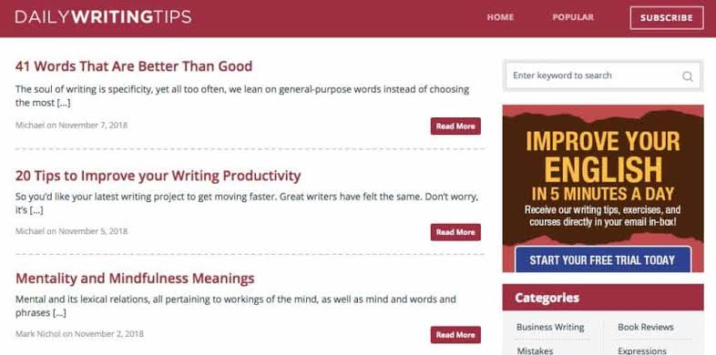 Reading blogs is certainly one of the best ways to improve writing skills, but when the blogs you read focus on writing, the learning outcomes are always better. So, if you want a blog to improve your writing, following Daily Writing Tips would be the best bet.