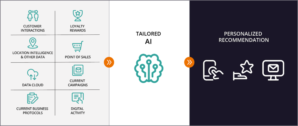 In this example, the AI inserts the keyword ‘freshly brewed coffee’ and the location of the coffee shop, creating a more personalized message for the consumer.