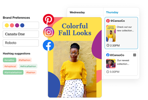 Content creation tools such as Canva have precise templates that enable you to swiftly produce visuals that look attractive, have your logo and tagline on them, and are constant with your brand.