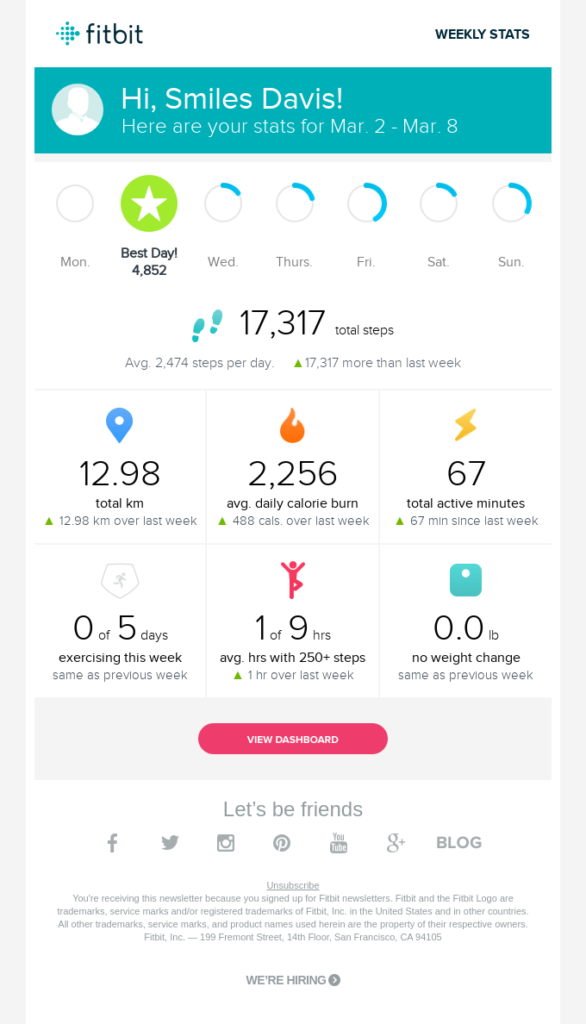 For example, Kindle sends statistics about how many hours, weeks, books you have read, recent books on topics of your interest, leading you back to kindle to read more.
