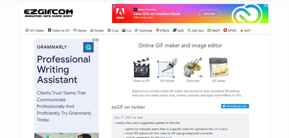 10. Ezgif: It’s an exciting content creation tool for GIFs. This standalone tool allows you to upload images, change their sequence and create animated GIFs that can be resized for your needs.