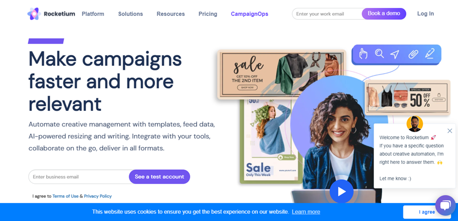 15. Rocketium: Online video maker Rocketium is a great content creation tool for social media. It offers a straightforward and intuitive interface, making it a quick and easy tool for video production.