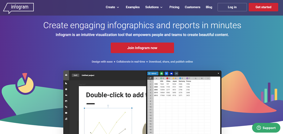 19. Infogram: Create designer-level infographic posts using this content creation tool. Infographics are powerful content that can be shared on any medium. Infogram has various pricing options and offers features in pre-built templates and ready-to-use images.