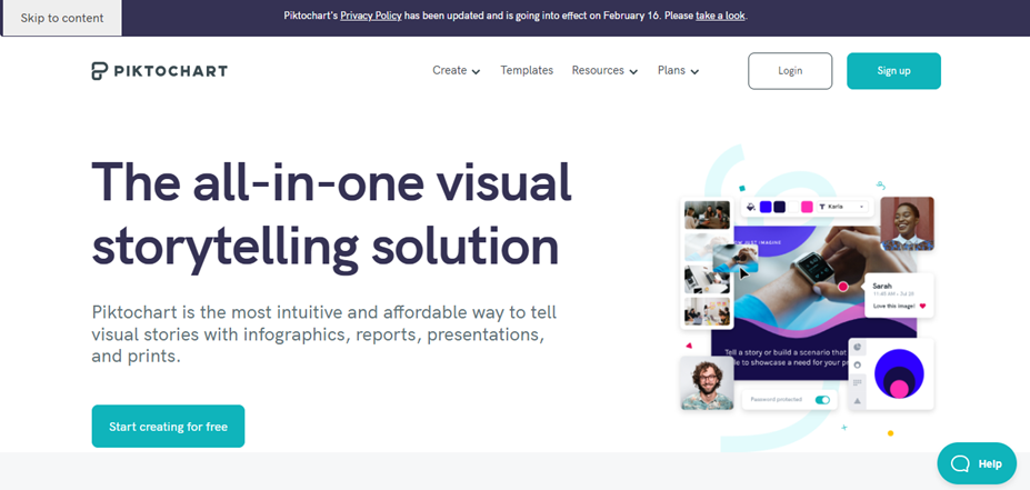 20. Piktochart: A great content creation tool for interesting infographics, presentations, flyers, and promotional posters, without the need for a professional designer. This content can be added to blogs to make them more appealing.