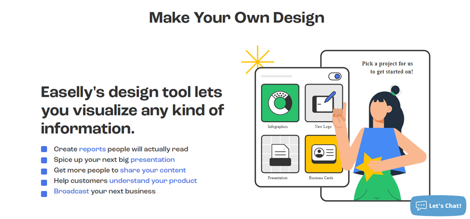 21. Easel.ly: Another helpful tool for creating stunning visuals for infographics with its vast repository of templates and graphics with quick turn-around times.