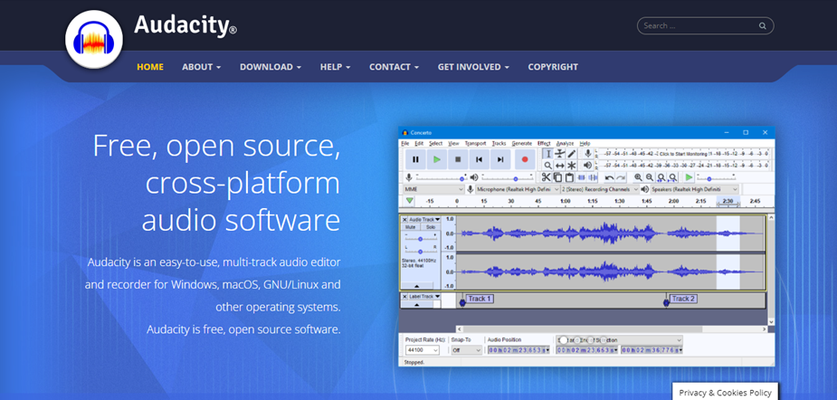 22. Audacity: This free software tool is a must-have for beginners. Audacity’s accurate sound recording and editing features allow you to generate audio content in various file formats, including wav, mp3, and aif.