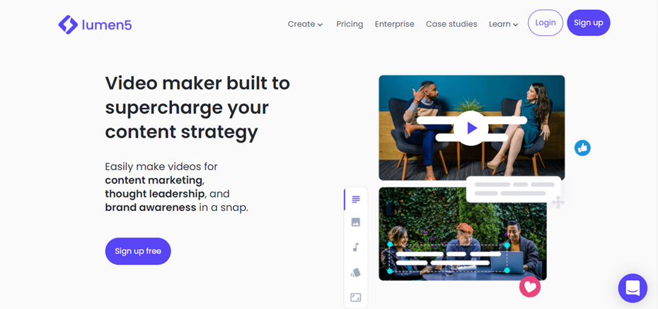 28. Lumen5: This is essentially a video maker with unique features. AI content and text from your blog can convert videos into informative marketing content using this tool.