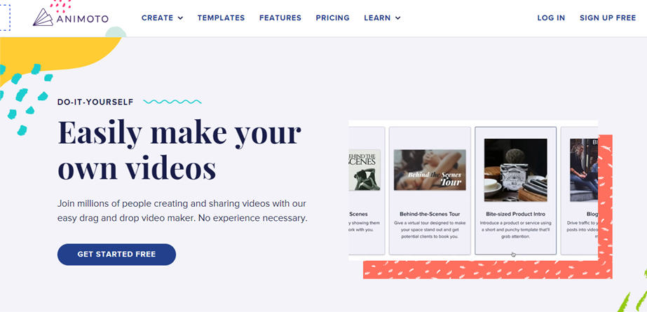 29. Animoto: Animoto can be used to create short-form content or videos by turning photos, videos, and clips into slideshows that are great for social media platforms.