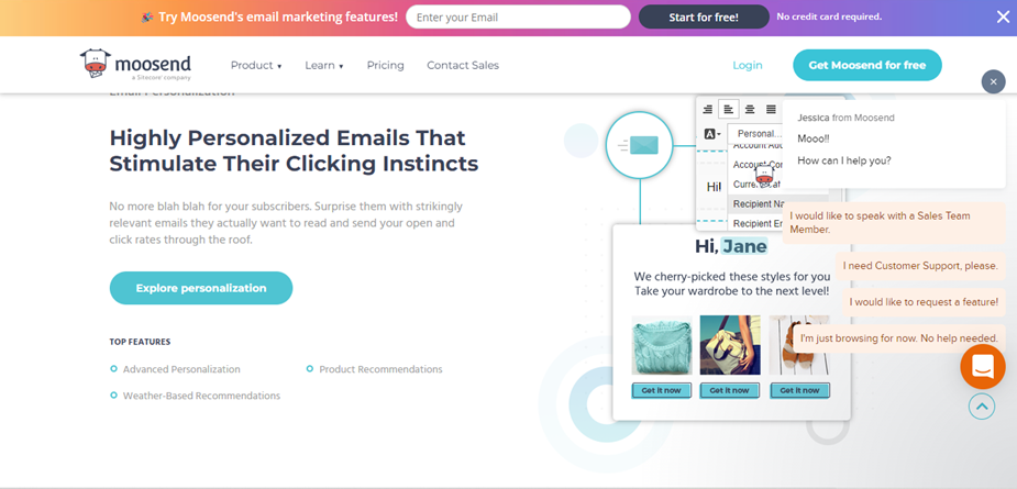 7. Moosend: This email marketing tool allows you to launch behavioral campaigns based on activities and information provided by subscribers. Using the detailed performance reports provided by the tool, you will create better-crafted emails for a more targeted subscriber base, thereby leading to a higher ROI. Repetitive emails and tasks can be automated. Moosend’s USP does not include its logo in its emails. It’s an excellent choice for marketers with a small list.