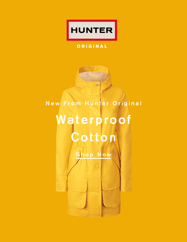 Hunter’s email includes a fun, interactive element. The GIF does most of the talking for the brand. Within twenty seconds, the readers gain all the information they need to know about the product. The tagline is direct. It tells the reader Hunter has a new product: a waterproof cotton jacket.