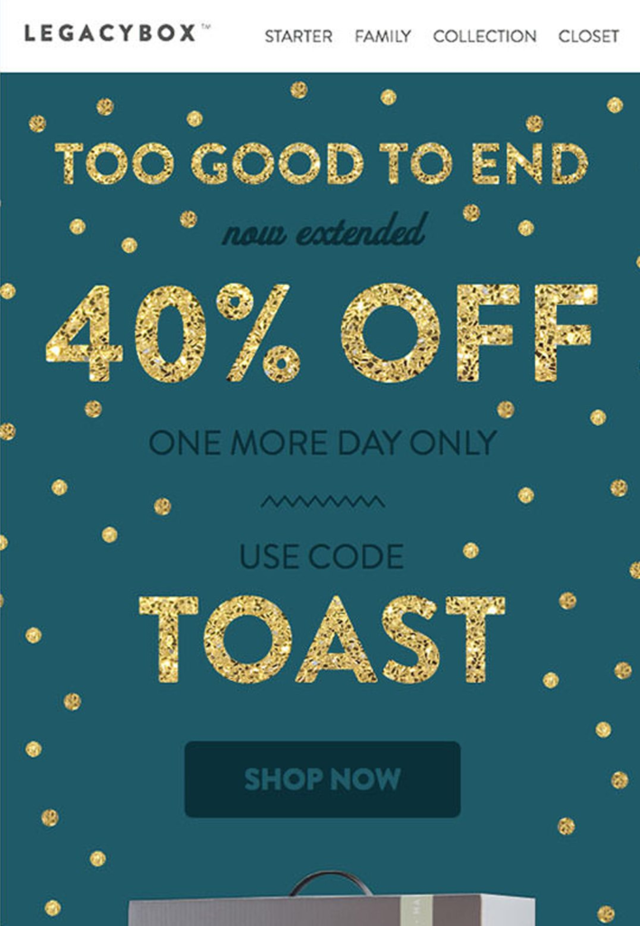 Capitalizing on a time-bound offer is a great way to coax people to click the call to action button on your marketing email. Nobody wants to miss out on an exciting offer, and with time ticking away, it urges them to act fast.