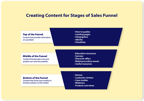 To accomplish this, content marketers utilize sales funnels, which comprise different phases of the buyer journey. This includes the top, center, and bottom of the sales funnel.