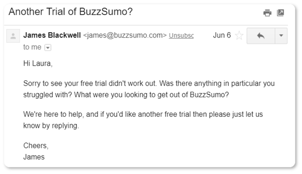 The email below by BuzzSumo is an example: