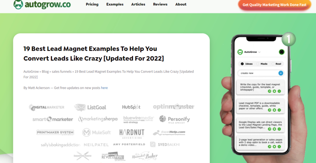 Autogrow’s article is one of the best examples of a fantastic way to cure writer’s block. Lead magnets entice customers by giving them an offer of value in exchange for their email addresses. The article gives multiple examples of different companies that actively use lead magnets.