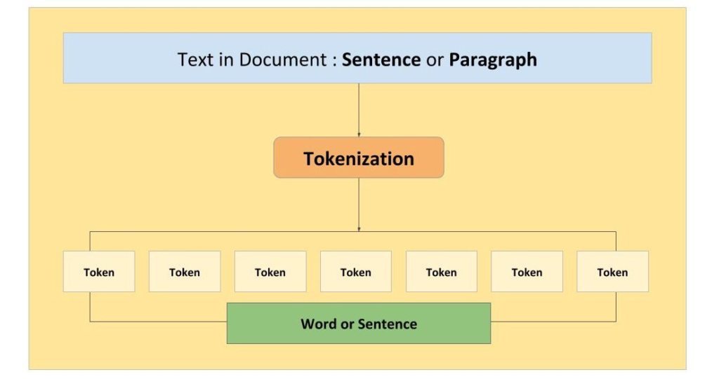 - The first stage is called tokenization. A string of words or sentences is broken down into components or tokens. This retains the essence of each word in the text.