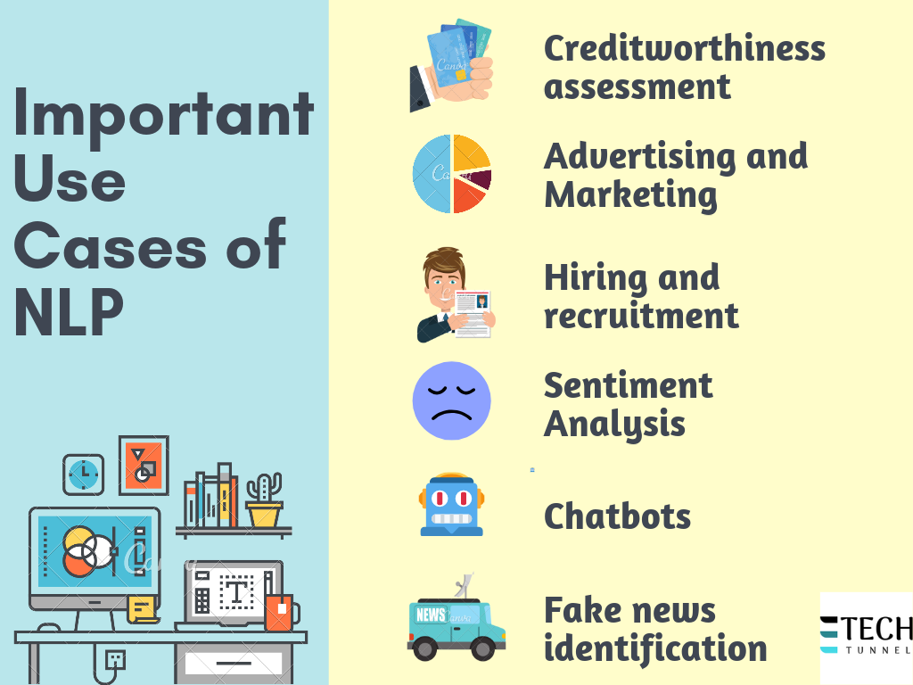 - NLP also helps in sentiment analysis. It recognizes the sentiment behind posts. For instance, it determines whether a review is positive, negative, serious or sarcastic. NLP mechanisms help companies like Twitter remove tweets with foul language, etc.