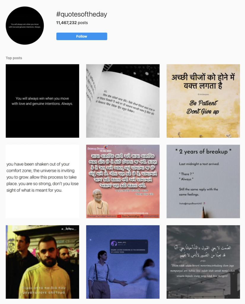 Keeping your hashtags simple and relevant to your niche is extremely important. Otherwise, you may be penalized by the Instagram algorithm or annoyed by followers. That said, let’s look at the most trending Instagram hashtags for 15 different content categories.