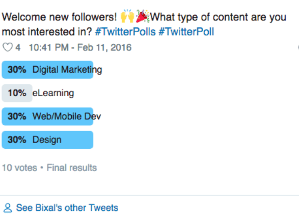 An exciting and convenient way to interact with your followers is by conducting a poll on trending topics that draw your interests or are related to your content writing.