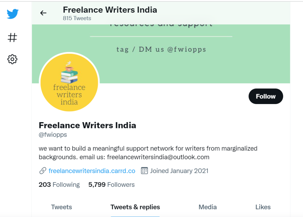Help yourself by following Twitter accounts that post freelance content writing opportunities frequently so that you can apply to them. These accounts also attract prospective clients and followers alike, so make sure you register your presence in these posts.