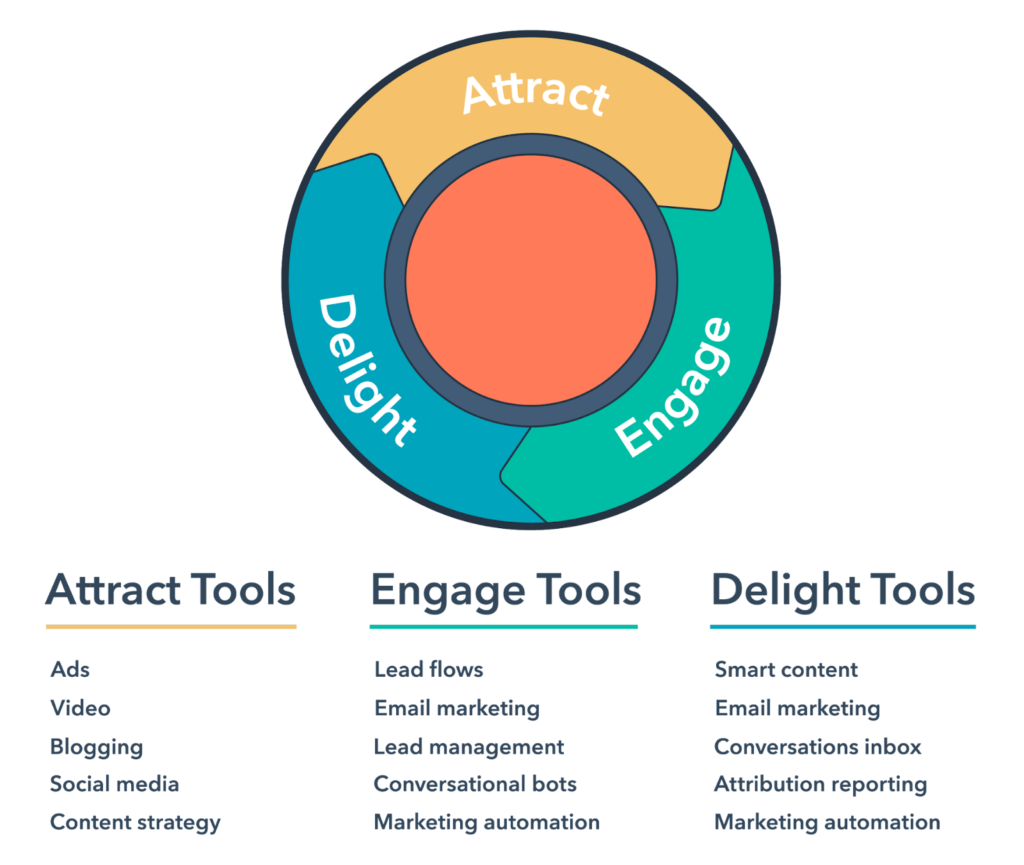 There are three main elements of the inbound methodology: Attract, Convert and Close.