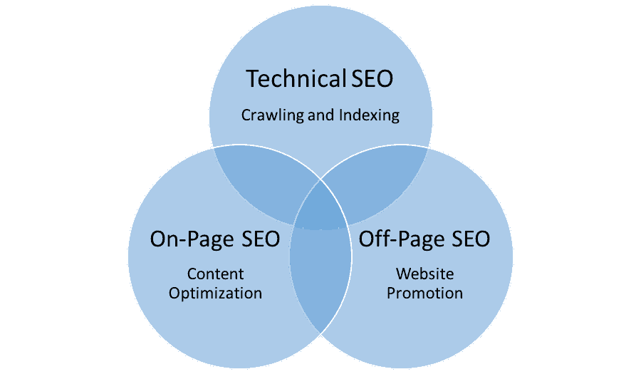 You can consider different routes when creating your SEO strategy. All these routes require you to pay attention to different parts of your website. You can choose many or just a couple of strategies, depending on what is suitable for your website. The image below broadly classifies where the focus of each of these SEO types lies.