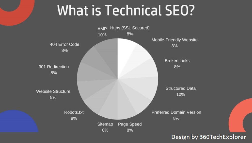 - Technical SEO includes tactics to improve your site’s backend structure and foundation, for instance, site architecture, loading speed, mobile-friendliness, and security.