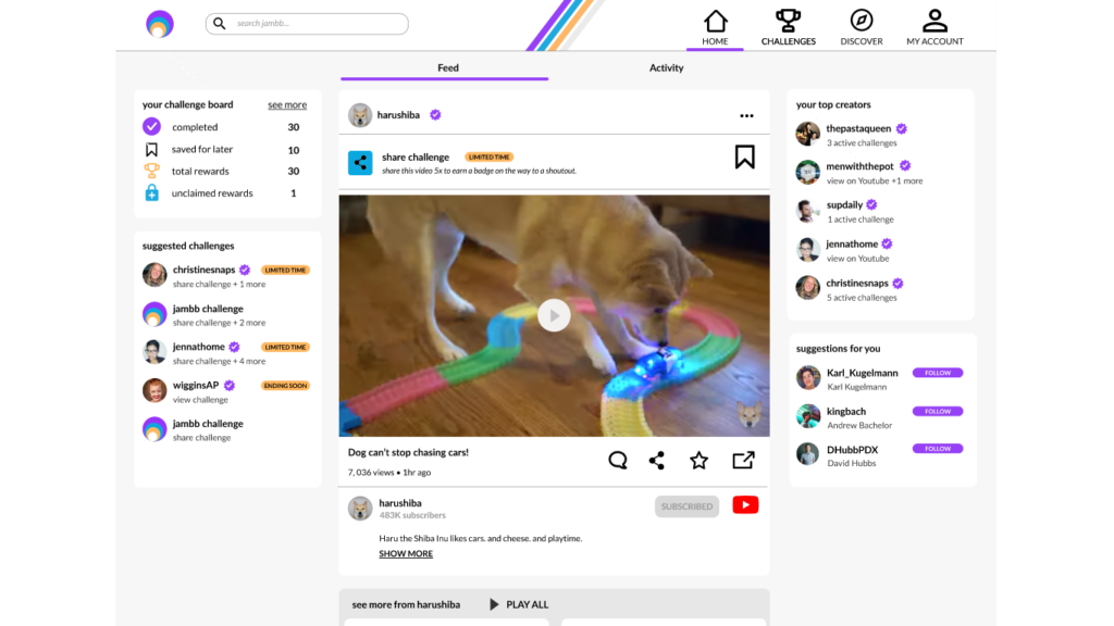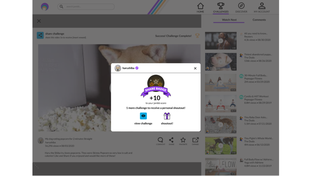 Finna Wang and her team of UI designers designed an incentive for the fans of famous comedians to join Creator Aggregator Platform – Jambb. This platform aims to help creators grow their communities by rewarding 99% of fans who contribute in non-monetary ways.