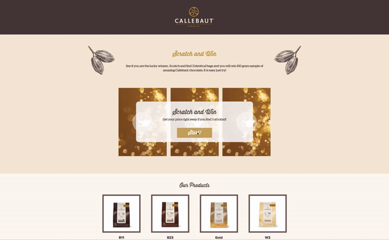 Callebaut, a Belgian chocolate brand, devised a scratch-and-win game to attract new visitors.