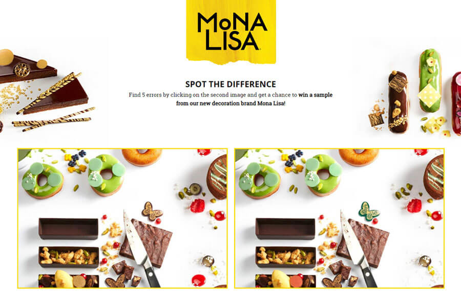 A Barry Callebaut brand, Mona Lisa specializes in chocolate decorations. They created a “spot the difference” game to engage customers and also create awareness around their brand. There were two sets of images, wherein the customers had to spot the differences in the products, and the winner could scratch and claim their prize. In order to do so, filling out the lead form was a prerequisite. Through the lead form, the company collected customer information for its newsletter database.