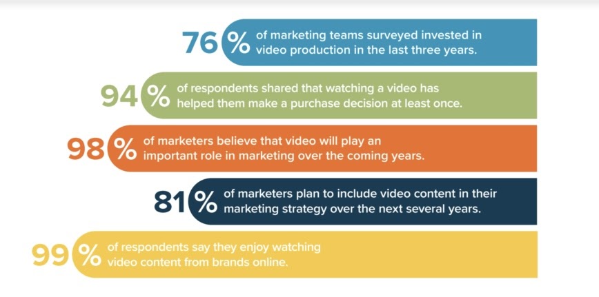 - 99% of marketing professionals said that they will continue to use videos as their marketing strategy in the future.