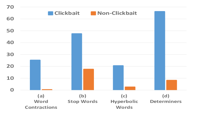 What’s the difference between a clickbait and a non-clickbait headline? Research shows that clickbait headlines tend to have more dependencies than non-clickbait headlines.