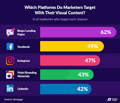 Forty-nine percent of marketers say visual marketing is critical, while 22% say it is vital. Forty-nine percent of marketers employ graphic material on their websites and blogs, followed by social media. People remember 65% of what they see three days later than 10 percent of what they hear.