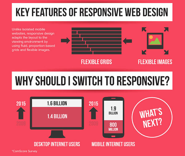 Responsive web design means building web pages that can alter their presentation using CSS3 media queries. This design helps the website adapt to the browser displaying the page for all devices.