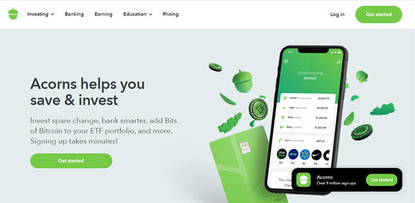 Color is often used to draw attention to or highlight specific elements like buttons, sections, important text, and offers. An example is Acorns’ (a financial services firm) green CTA button, contrasting nicely with white, making it noticeable on the page.