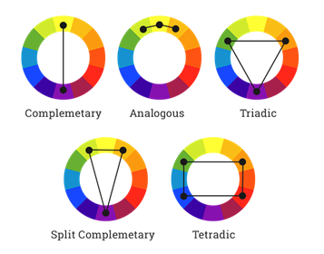 ● Triadic: three colors that are evenly spaced around the color wheel