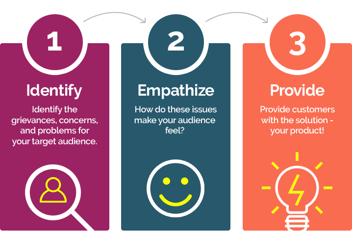What can they do to solve their problems immediately? How can they make their days and lives more productive? Remember the old saying, “Sell the sizzle, not the steak?” This means you should talk about the benefits and advantages, not the product.