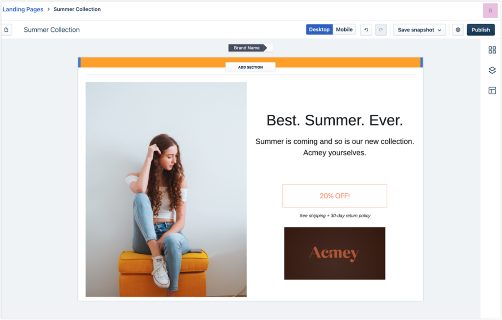 Unlike web pages, landing pages have a single focus or goal, known as a call to action (or CTA, for short). A customer who clicks on the landing page is charmed with a compelling copy and spellbinding visuals of your eCommerce.