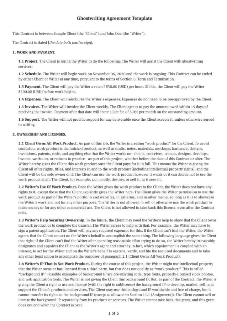 Ghostwriting is an agreement, where it is pre-decided that the original writer will not get any credit for the work done. Besides that, the contract should specifically mention the price that is negotiated between the two parties. It should be based on certain parameters, including the experience and proficiency of the ghostwriter. The contract should protect the rights of both the parties involved. Mentioned below is a sample of a ghostwriting agreement.
