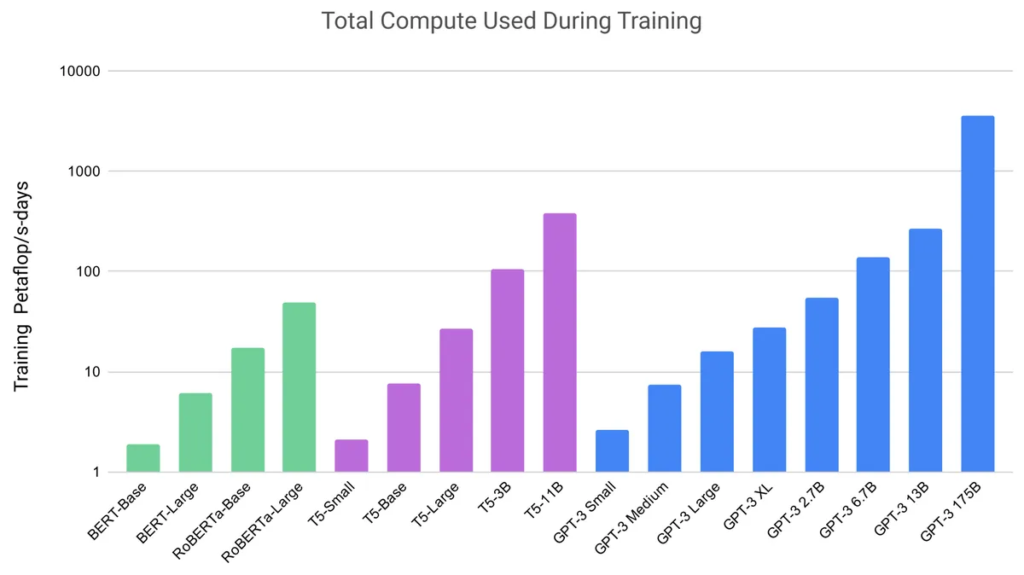 GPT-3 has used the highest compute power for training – no wonder it is so efficient and accurate.